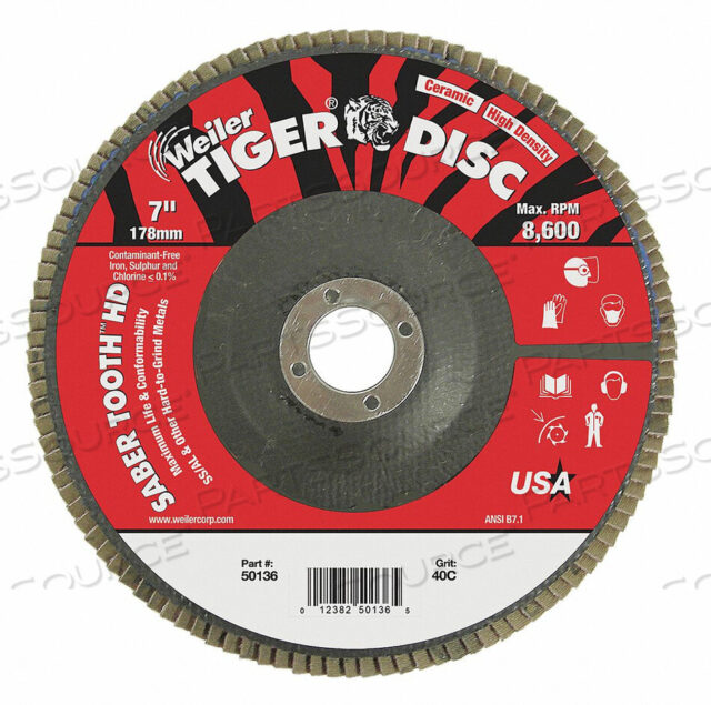 J1575 ЛЕПЕСТКОВЫЙ ДИСКОВЫЙ КЕРАМИЧЕСКИЙ ИЗ ОКСИДА АЛЮМИНИЯ 7 ДЮЙМОВ. 40 GRIT