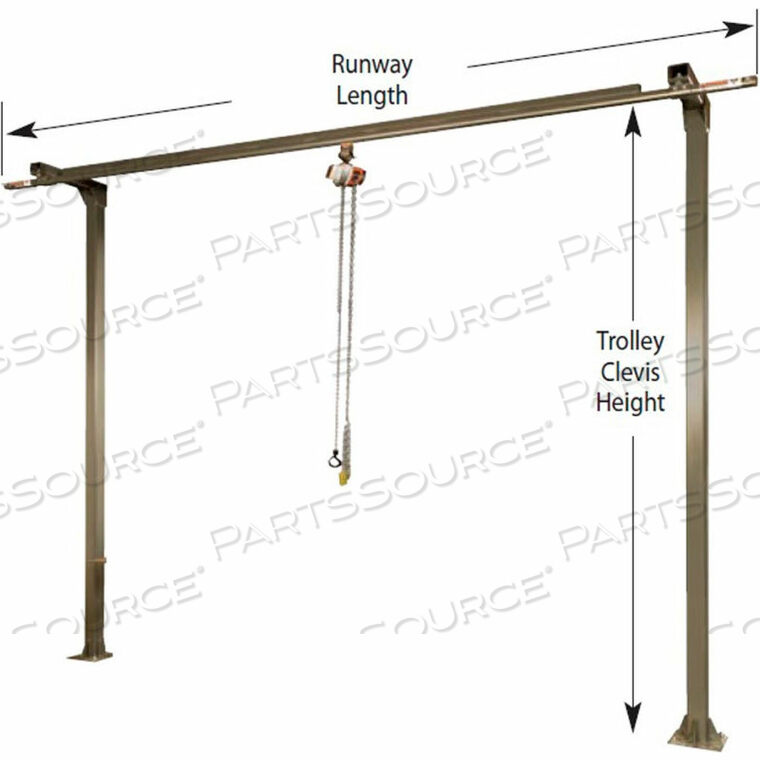 500 фунтов. ВМЕСТИМОСТЬ, МОНОРЕЛЬСОВАЯ СИСТЕМА, ДЛИНА ПОЛОСЫ 12, ВЫСОТА ТЕЛЕЖКИ СКОБЫ 12, 2 КОЛОННЫ