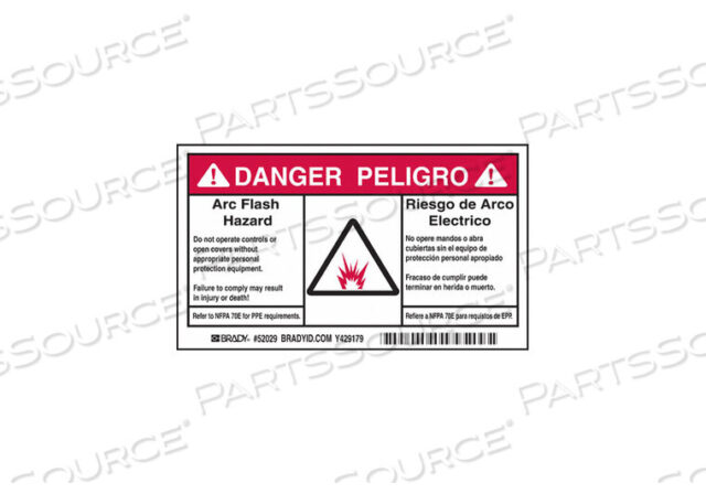 Опасность/Peligro! Опасность дуговой вспышки. Не используйте элементы управления и не открывайте крышки без соответствующих средств индивидуальной защиты. Несоблюдение может привести к травмам или смерти (с пиктограммой)