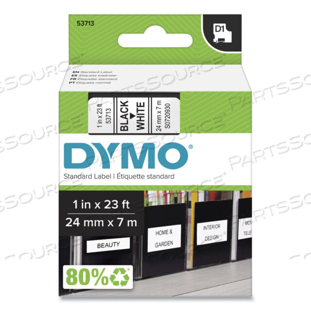 D1 ВЫСОКОПРОИЗВОДИТЕЛЬНАЯ ПОЛИЭСТЕРНАЯ СЪЕМНАЯ ЭТИКЕТОЧНАЯ ЛЕНТА, 1 X 23 ФУТА, ЧЕРНАЯ НА БЕЛОМ