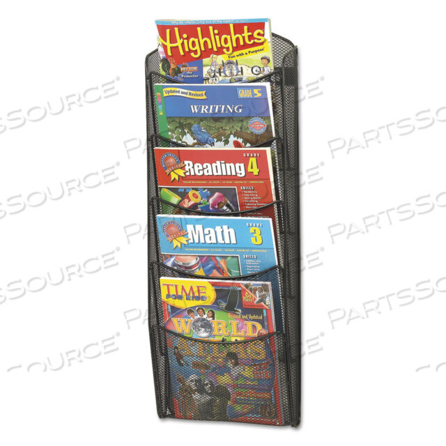 СТЕЖКА ДЛЯ ЛИТЕРАТУРЫ ИЗ ОНИКСОВОЙ СЕТКИ, ПЯТЬ ОТДЕЛЕНИЙ, 10,25 Ш X 3,5 Г X 28,33 В, ЧЕРНАЯ