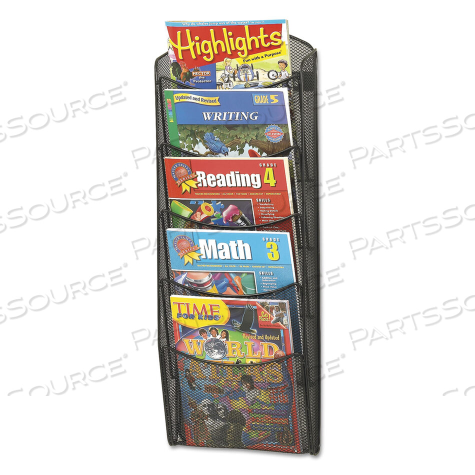 СТЕЖКА ДЛЯ ЛИТЕРАТУРЫ ИЗ ОНИКСОВОЙ СЕТКИ, ПЯТЬ ОТДЕЛЕНИЙ, 10,25 Ш X 3,5 Г X 28,33 В, ЧЕРНАЯ
