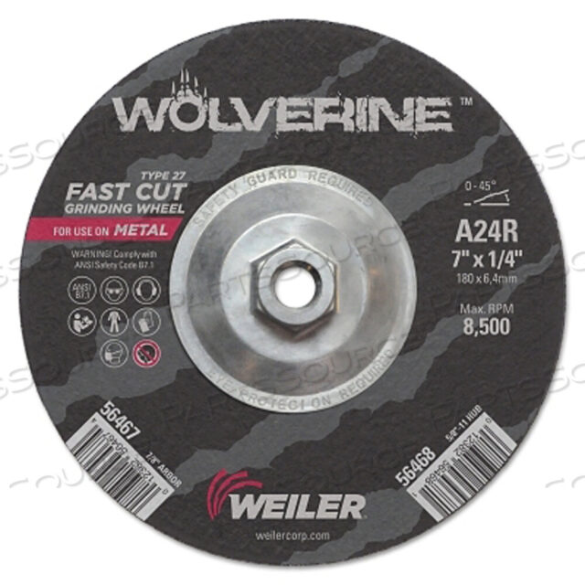 ШЛИФОВАЛЬНЫЙ КРУГ WOLVERINE, ДИАМЕТР 7 ДЮЙМОВ, ТОЛЩИНА 1/4 ДЮЙМА, ОПРАВКА 5/8 ДЮЙМА — 11 UNC, ЗЕРНИСТОСТЬ 24