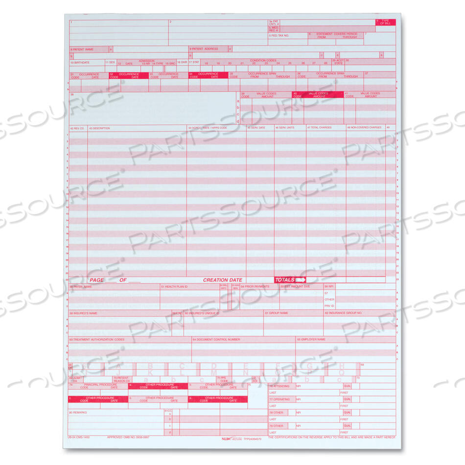 UB04 ФОРМА СТРАХОВАНИЯ БОЛЬНИЦЫ ДЛЯ ЛАЗЕРНЫХ ПРИНТЕРОВ, ОДНА ЧАСТЬ (БЕЗ КОПИЙ), 8,5 X 11, ВСЕГО 2500 ФОРМ