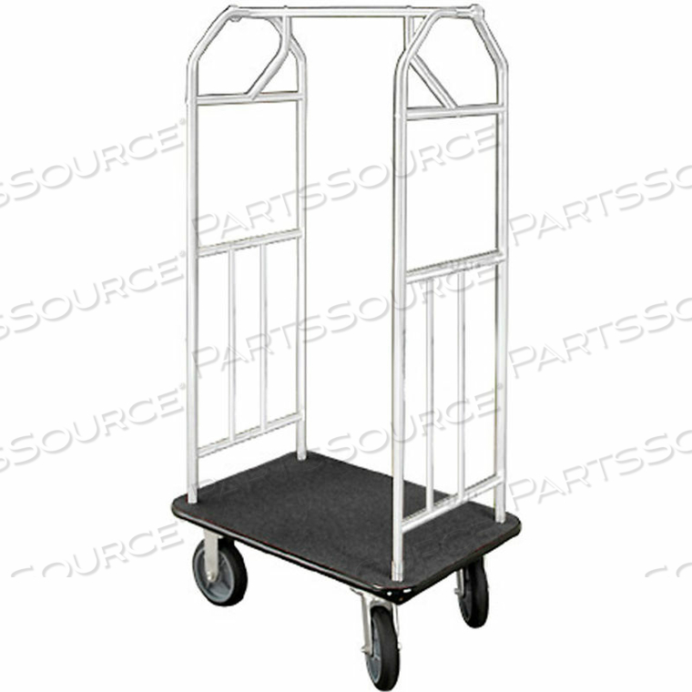 ТЕЛЕЖКА BELLMAN HOTEL 35X24 САТИНОВЫЙ АЛЮМИНИЙ С ЧЕРНЫМ КОВРОЛИКОМ И РЕЗИНОВЫМИ КОЛЕСАМИ