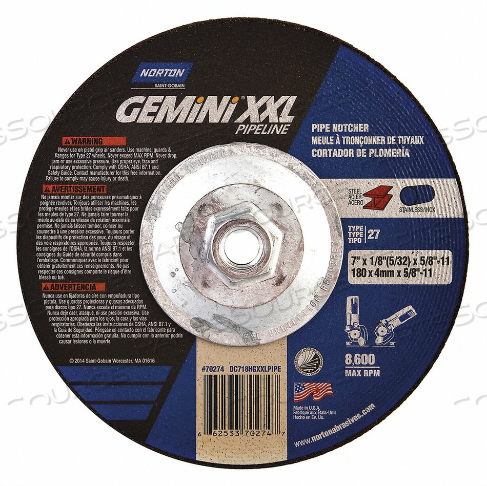 КОЛЕСО С УГЛУБЛЕННЫМ ЦЕНТРОМ 7 ДЮЙМОВ 5/8-11 ОПРАВКА