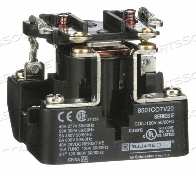 OEM#: 8501CO7V20ОТКРЫТОЕ РЕЛЕ ПИТАНИЯ, 6 PIN, 120 В переменного тока, DPST-NO, Square D