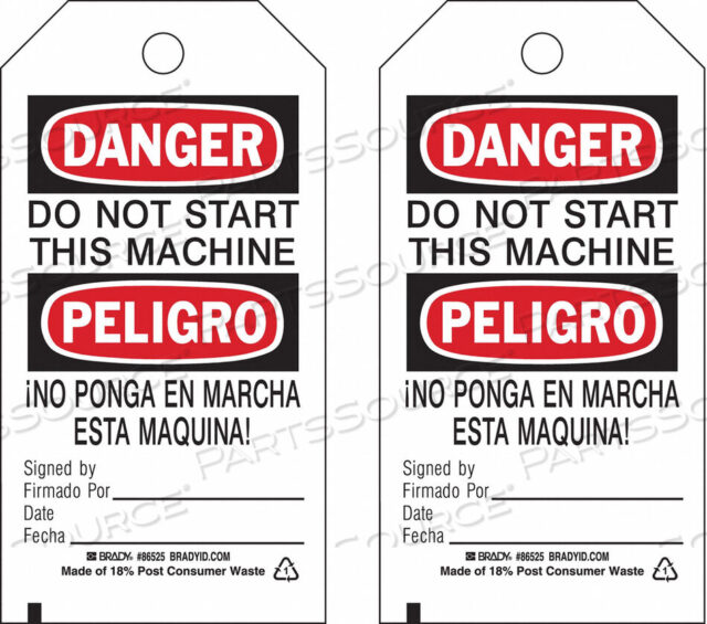 OEM#: 86525DANGER ДВУЯЗЫЧНАЯ БИРКА 5-3/4 X 3 ДЮЙМА PK10 от Brady Americas