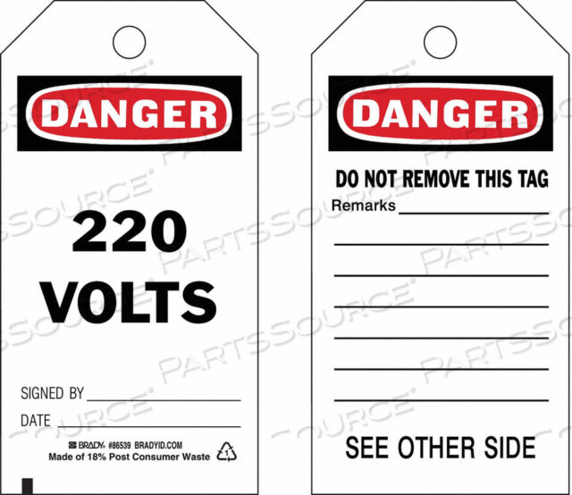 БИРКА ОПАСНОСТИ 5-3/4 X 3 ДЮЙМА 220 ВОЛЬТ PK10