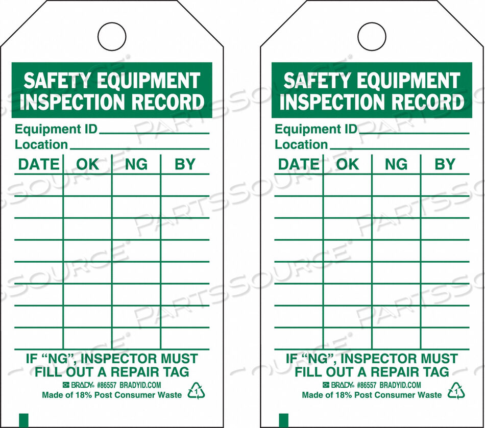 OEM#: 86557SAF EAPT INSPECTION RCD TAG GRN/WHT PK10 от Brady Americas