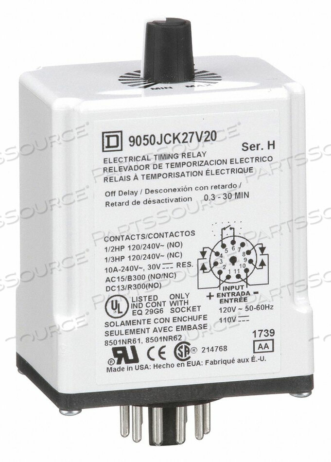 OEM#: 9050JCK27V20РЕЛЕ ЗАДЕРЖКИ ВРЕМЕНИ 120 В переменного тока 10 А DPDT 0,3 сек. от Square D