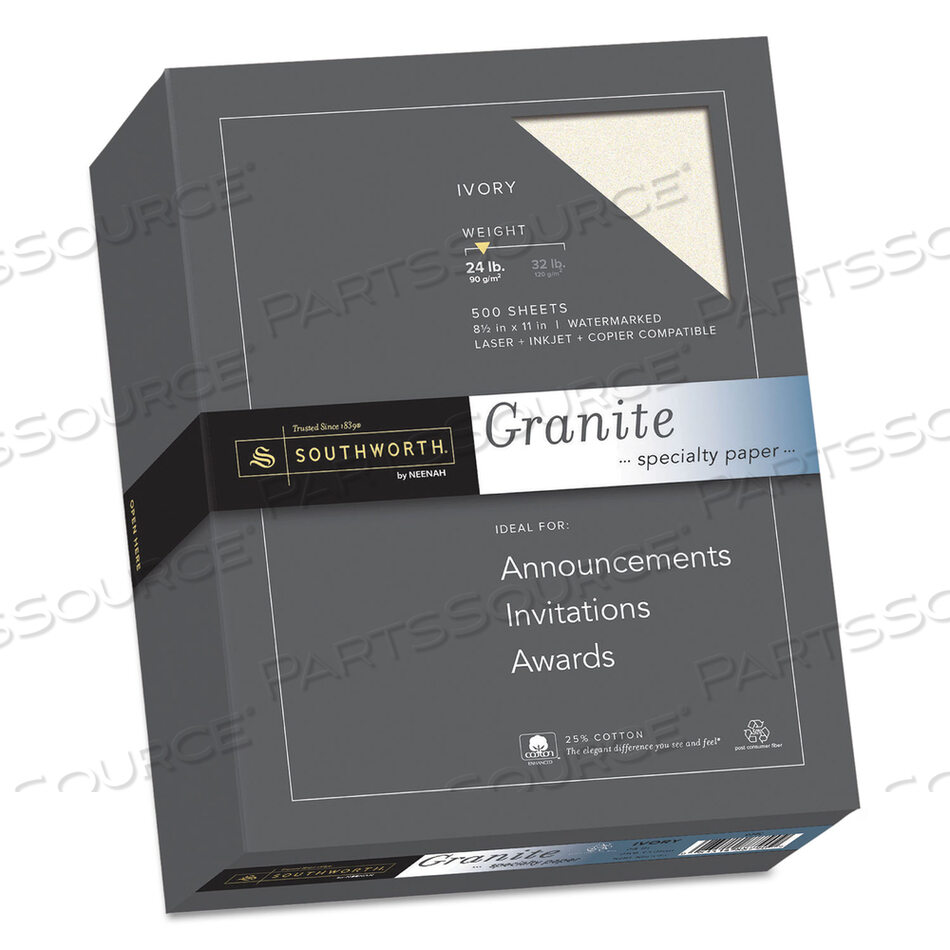 GRANITE SPECIALTY PAPER, 24 ФУНТА BOND WEIGHT, 8,5 X 11, IVORY, 500/СТОПА