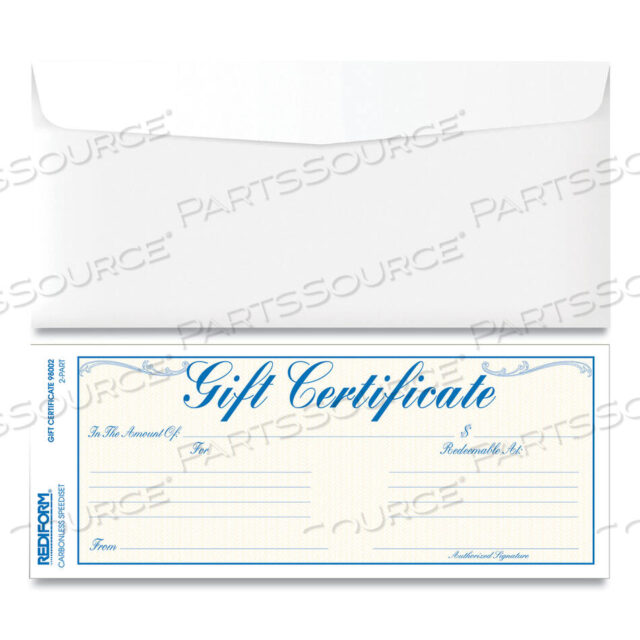 ПОДАРОЧНЫЕ СЕРТИФИКАТЫ С КОНВЕРТАМИ, 8,5 X 3,67, СИНИЙ/ЗОЛОТОЙ С СИНЕЙ КАЙМОЙ, 25 ШТ./УПАКОВКА