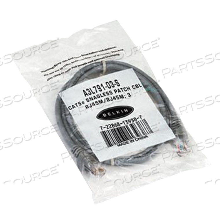 3-ФУТОВЫЙ CAT5E SNAGLESS PATCH CABLE, UTP, СЕРАЯ ПВХ-ОБОЛОЧКА, 24AWG, T568B, 50 МИКРОН, G