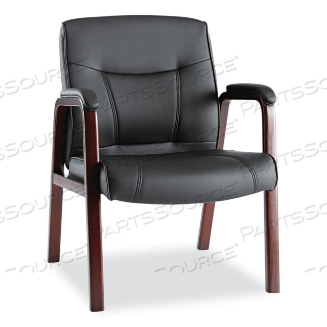 КОЖАНЫЙ СТУЛ ДЛЯ ГОСТЕЙ СЕРИИ ALERA MADARIS С ДЕРЕВЯННОЙ ОТДЕЛКОЙ НОЖЕК, 25,39 X 25,98 X 35,62, ЧЕРНОЕ СИДЕНИЕ/СПИНКА, ОСНОВАНИЕ ИЗ КРАСНОГО ДЕРЕВА