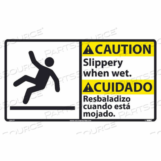 OEM#: CBA7PДВУЯЗЫЧНАЯ ВИНИЛОВАЯ ЗНАК – ВНИМАНИЕ: СКОЛЬЗКОЕ ВО ВЛАЖНОМ ВРЕМЕНИ от National Marker Company.