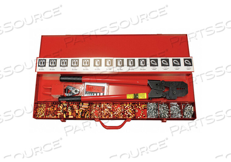 Ассортимент медных и нержавеющих стальных втулок, коушей и стопоров для троса от 1/16 до 3/16 и металлический ящик для переноски/хранения