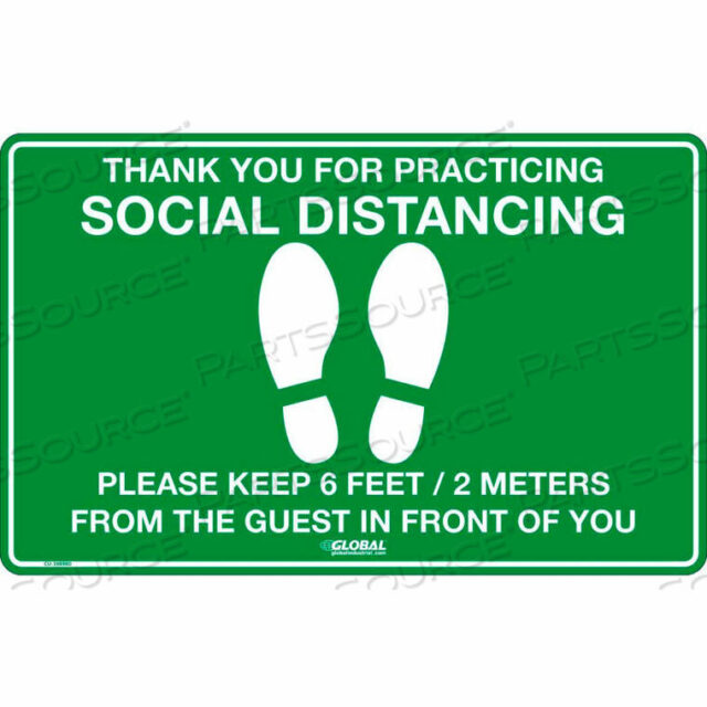 ЗЕЛЕНЫЙ НАПОЛЬНЫЙ ЗНАК СОЦИАЛЬНОГО ДИСТАНЦИРОВАНИЯ, 16 Ш X 10 В, ВИНИЛОВЫЙ КЛЕЙ