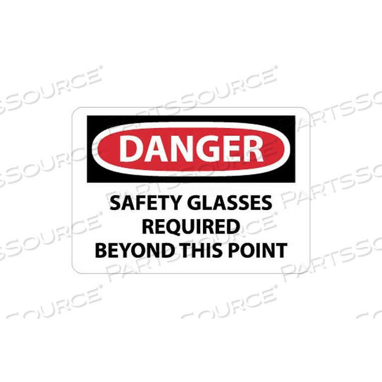 ЗНАК NMC OSHA, ОПАСНОСТЬ! ЗА ПРЕДЕЛАМИ ЭТОЙ ТОЧКИ ТРЕБУЮТСЯ ЗАЩИТНЫЕ ОЧКИ, 10 X 14, БЕЛЫЙ/КРАСНЫЙ/ЧЕРНЫЙ