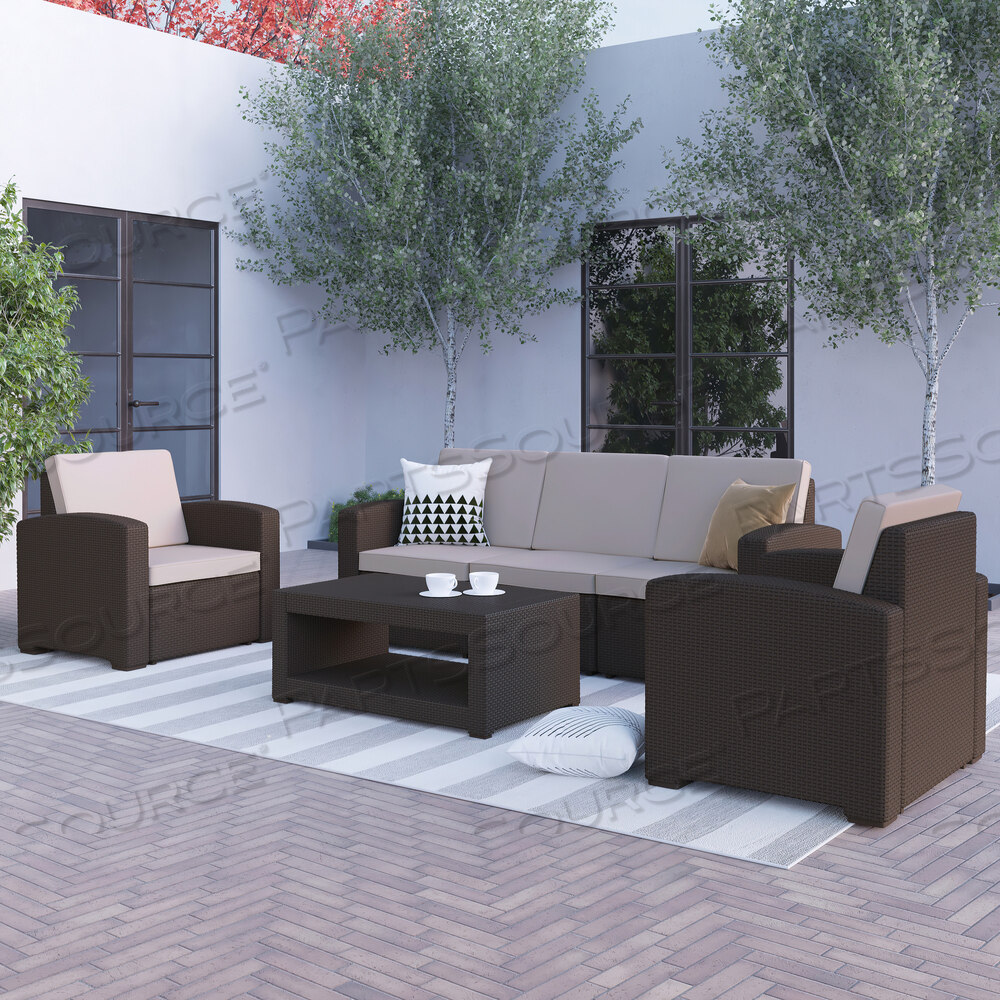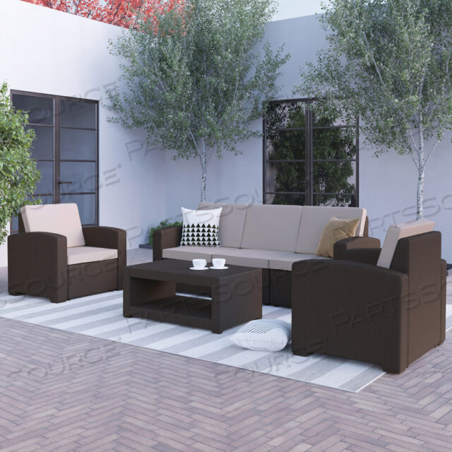 Уличный комплект из 4 предметов: кресло, диван и стол из искусственного ротанга SENECA в шоколадно-коричневом цвете
