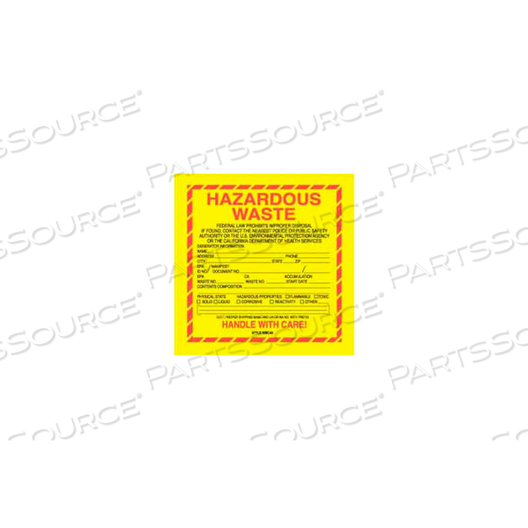ОПАСНЫЕ ОТХОДЫ КАЛИФОРНИЯ 6 X 6 — ЖЕЛТЫЙ / КРАСНЫЙ / ЧЕРНЫЙ