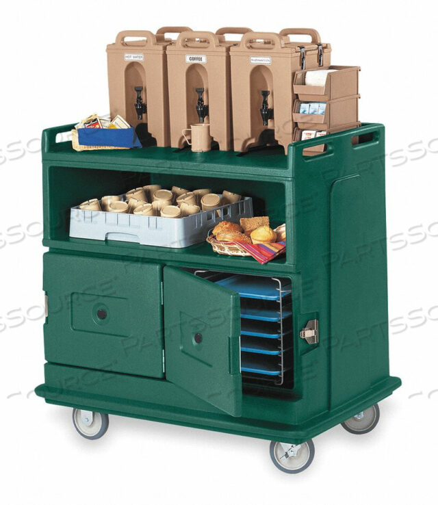 (1) Каждая тележка для подачи напитков, (2) фиксированных, (2) поворотных ролика с тормозом, 6 роликов, литая верхняя стойка вмещает 1 галлон (модель 100LCD) Только для серверов напитков Camtainer
