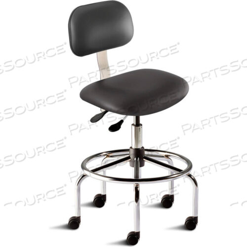 АНТИМИКРОБНЫЙ ТАБУРЕТ, ВЫСОТА СИДЕНЬЯ 21-28, ЧЕРНЫЙ ВИНИЛ — ЧЕРНОЕ СТАЛЬНОЕ ОСНОВАНИЕ — СЕРИЯ ELITE