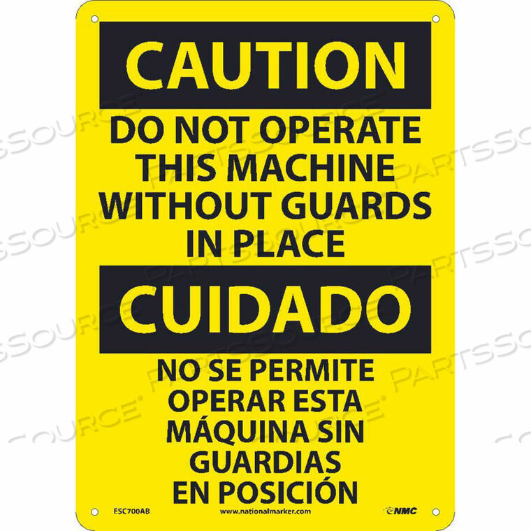 ДВУЯЗЫЧНЫЙ АЛЮМИНИЕВЫЙ ЗНАК — ВНИМАНИЕ! НЕ ЭКСПЛУАТИРУЙТЕ ЭТУ МАШИНУ БЕЗ ЗАЩИТНЫХ УСТРОЙСТВ