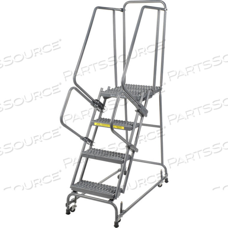 ЛЕСТНИЦА GRIP 16W 4 СТУПЕНЧАТАЯ СТАЛЬНАЯ НА РОЛИКОВЫХ КОЛЕСАХ 21D С ВЕРХНЕЙ СТУПЕНЬКОЙ
