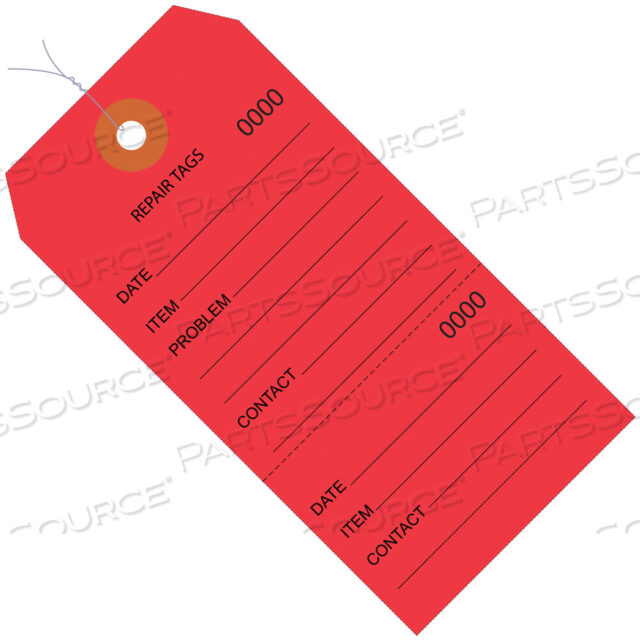 РЕМОНТНЫЕ БИРКИ, ПОСЛЕДОВАТЕЛЬНЫЕ НУМЕРАЦИИ, ПРЕДВАРИТЕЛЬНО ПОДКЛЮЧЕННЫЕ, 6 1/4 X 3 1/8, КРАСНЫЕ, 1000 /CASE