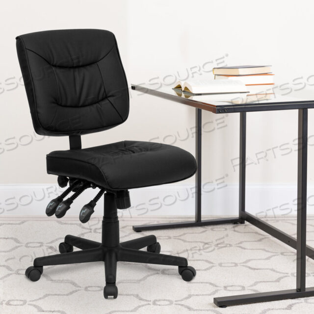 OEM#: GO-1574-BK-GGCOLE MID-BACK BLACK LEATHERSOFT MULTIFUNCTION SWIVEL ERGONOMIC TASK OFFICE CHAIR by Flash Furniture