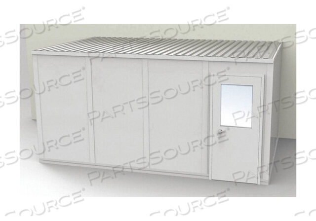 (1) дверь 3 x 7 футов со стеклом, акустический потолок и настил крыши, виниловое основание внутри и снаружи