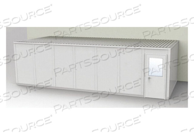 (1) дверь 3 x 7 футов со стеклом, акустический потолок и настил крыши, виниловое основание внутри и снаружи