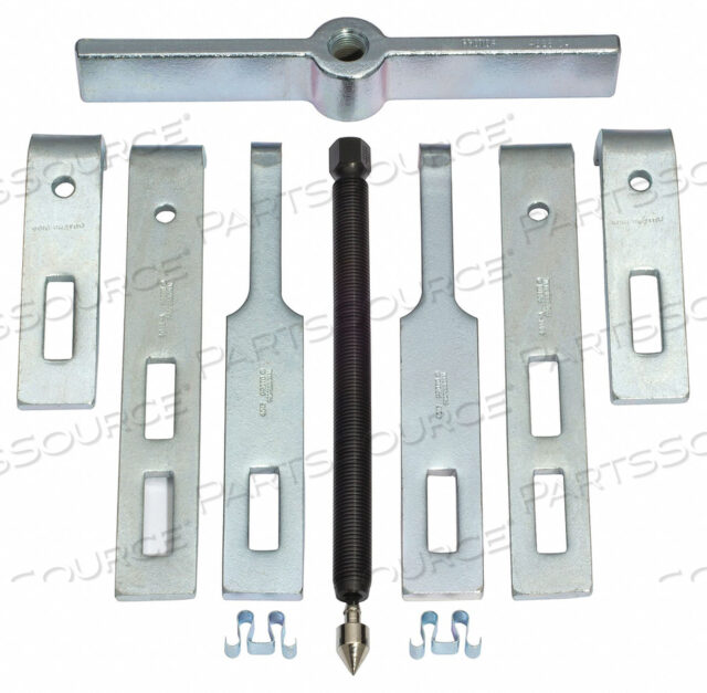 (2) губки с колпачковым винтом, (2) губки с двойной рейкой, (2) длинные узкие губки, (2) пружинный зажим, двухсторонний поперечный рычаг, съемный наконечник, силовой винт