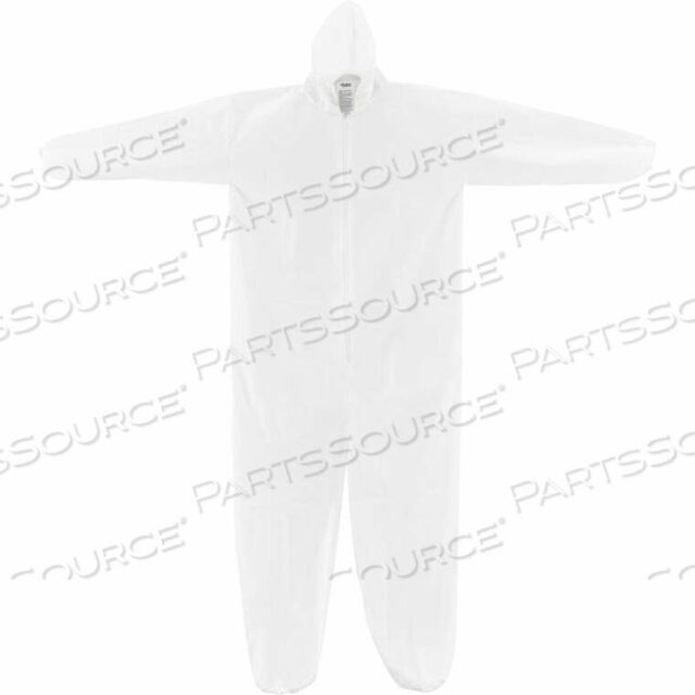 ОДНОРАЗОВЫЙ МИКРОПОРИСТЫЙ КОМБИНЕЗОН, ЭЛАСТИЧНЫЙ КАПЮШОН, БЕЛЫЙ, БОЛЬШОЙ, 25 В КОРОБКЕ