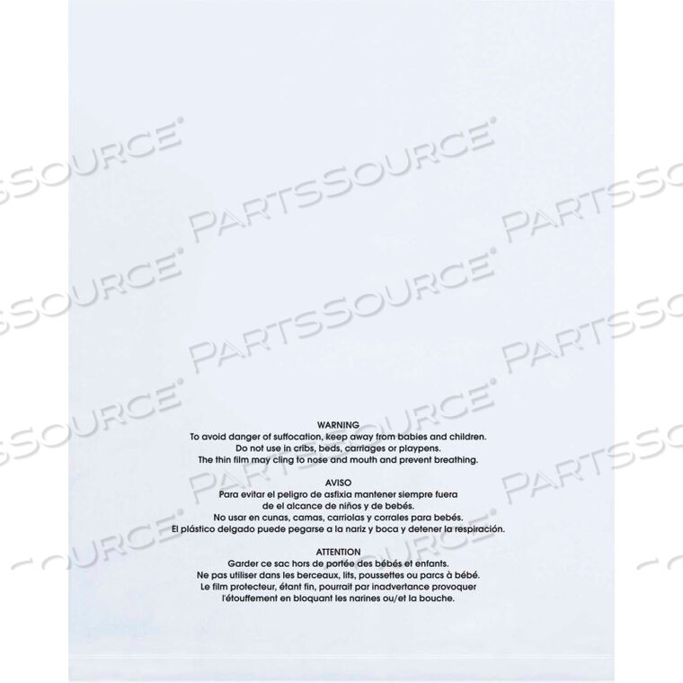 ПЛОСКИЕ ПОЛИЭТИЛЕНОВЫЕ ПАКЕТЫ С ПРЕДУПРЕЖДЕНИЕМ ОБ УДУШЕНИИ, 12 Ш X 18 Л, 1 МИЛ ПРОЗРАЧНЫЙ — УПАКОВКА 1000 ШТ.