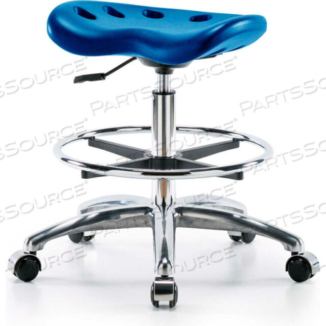 ТАБУРЕТ ДЛЯ ТРАКТОРА INTERION ИЗ ПОЛИУРЕТАНА С КОЛЬЦОМ ДЛЯ НОГ — СИНИЙ С ХРОМИРОВАННЫМ ОСНОВАНИЕМ