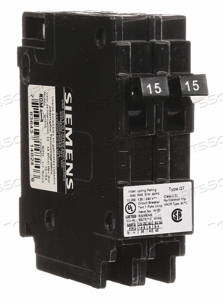 АВТОМАТИЧЕСКИЙ ВЫКЛЮЧАТЕЛЬ 15/15A ВИЛКА 120 В 1P