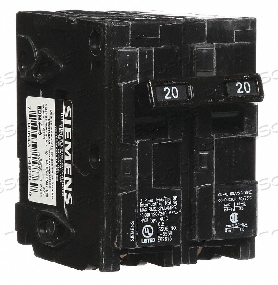 АВТОМАТИЧЕСКИЙ ВЫКЛЮЧАТЕЛЬ 20A ВИЛКА 120/240V 2P