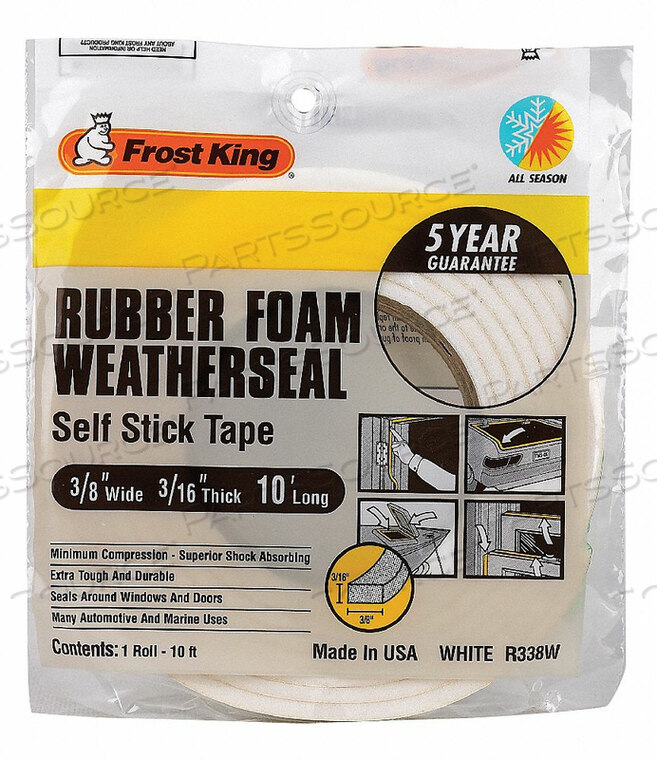 OEM#: R338WHH3681 ЛЕНТА ИЗ ГУБЧИКОВОЙ РЕЗИНОВОЙ ПЕНЫ, 3/8 ДЮЙМОВ X 10 ФУТОВ. от Thermwell Products Co., Inc.