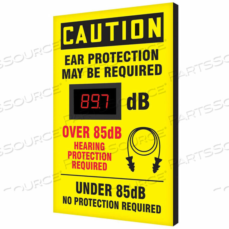 ЗНАК ДЕЦИБЕЛМЕТРА, ВНИМАНИЕ, МОЖЕТ ПОТРЕБОВАТЬСЯ ЗАЩИТА УШЕЙ, 20 X 12 X 1