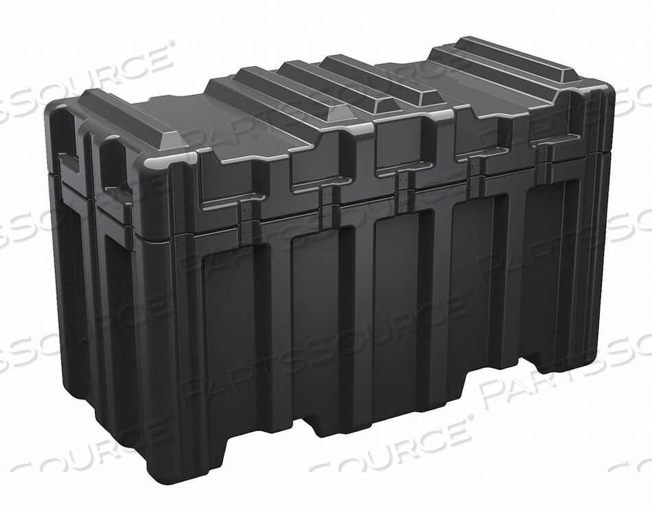 Hinged Lid, Comfort Grip Handles, Recessed Hardware, Positive Anti-Shear Locks, Molded-In Metal Inserts for Catch and Hinge Attachment Points, Forklift Skidrunner