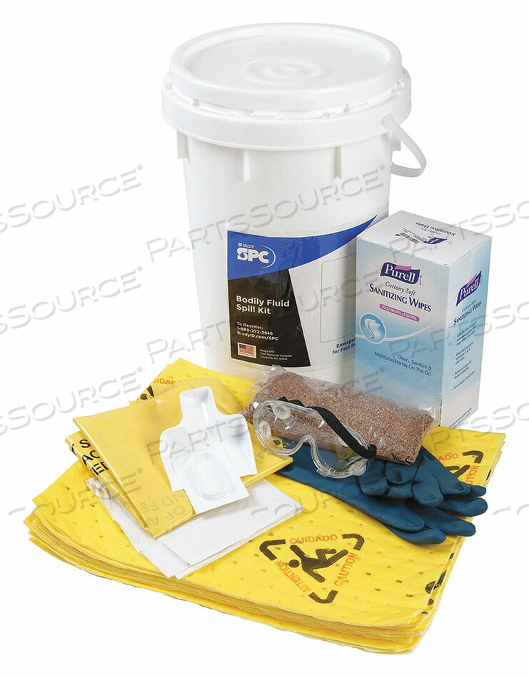 (10) 15 x 19 дюймов прокладок с барьерной подкладкой, (2) мешка для утилизации, 1 фунт гранул, неопреновый фартук, пара очков, пара неопреновых перчаток, совок, скребок, набор гигиенических салфеток