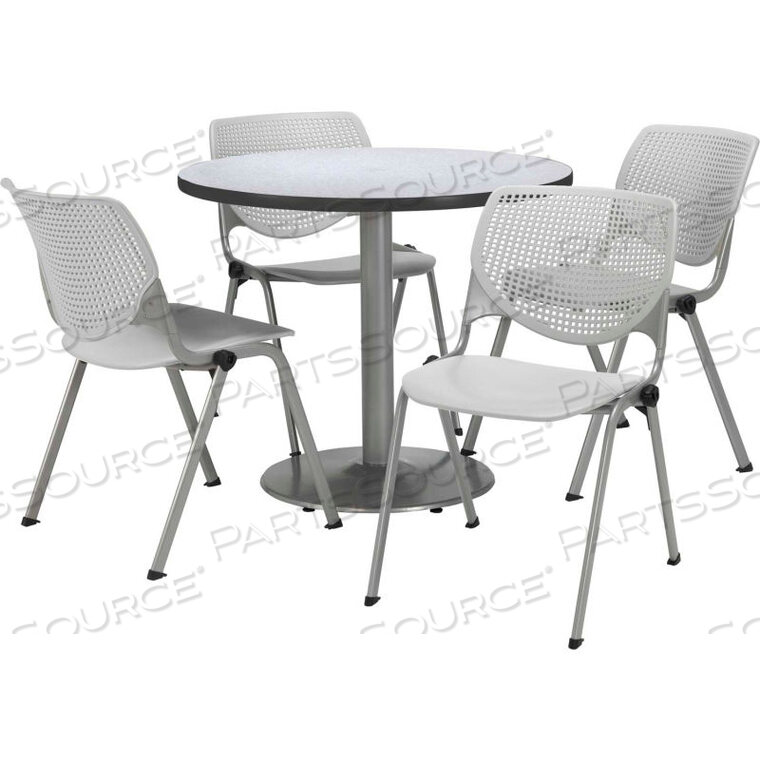 ОБЕДЕННЫЙ СТОЛ И КОМПЛЕКТ СТУЛЬЕВ — КРУГЛЫЙ — 36Ш X 29В — СВЕТЛО-СЕРЫЕ ПЛАСТИКОВЫЕ СТУЛЬЯ С СЕРЫМ СТОЛОМ NEBULA