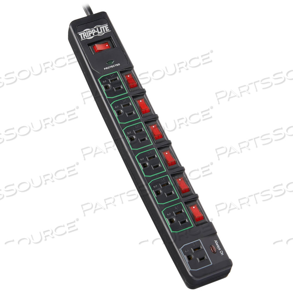 OEM#: TLP76MSGBECO SURGE PROTECTOR POWER STRIP GREEN 7-OUTLET 6FT CORD, BLACK by Tripp Lite