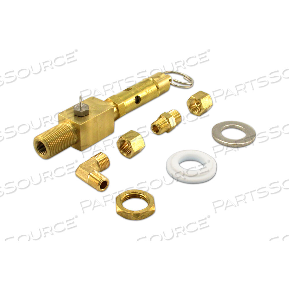 Включает в себя: Держатель предохранительного клапана Предохранительный клапан (40 фунтов на кв. дюйм) Воздушный струйный клапан (красный верх)