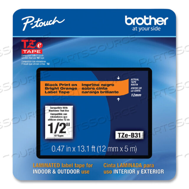 Brother Genuine P-Touch, TZe-B31CS, 0,47 x 16,4 фута, черный на флуоресцентной оранжевой ламинированной ленте для этикеток