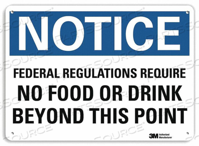 Уведомление Федеральные правила не требуют еды или питья за этой точкой