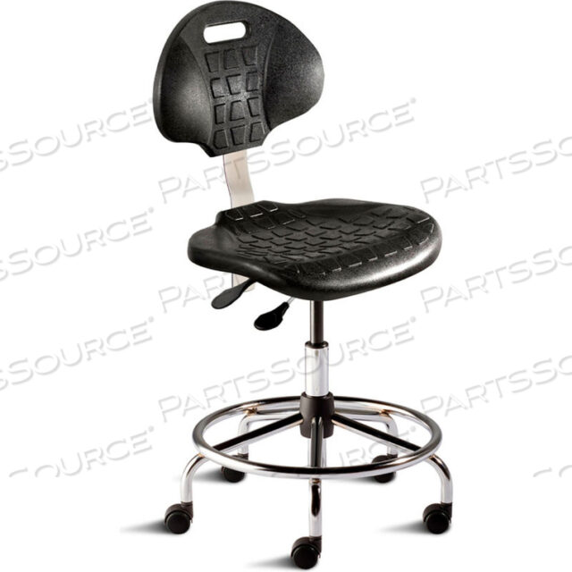 РАБОЧИЙ ТАБУРЕТ, ВЫСОТА СИДЕНЬЯ 20-27, ЧЕРНЫЙ УРЕТАН — ОСНОВАНИЕ ИЗ ХРОМИРОВАННОЙ СТАЛИ — СЕРИЯ UNIQUEU