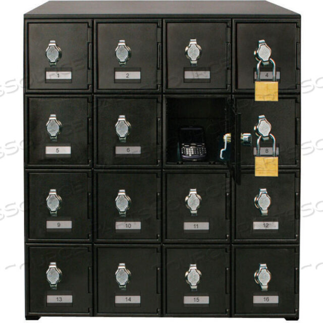 16-ДВЕРНЫЙ ШКАФЧИК ДЛЯ СОТОВОГО ТЕЛЕФОНА С ЗАМКАМИ HASP, 22WX16DX26H, ЧЕРНЫЙ, В СБОРЕ